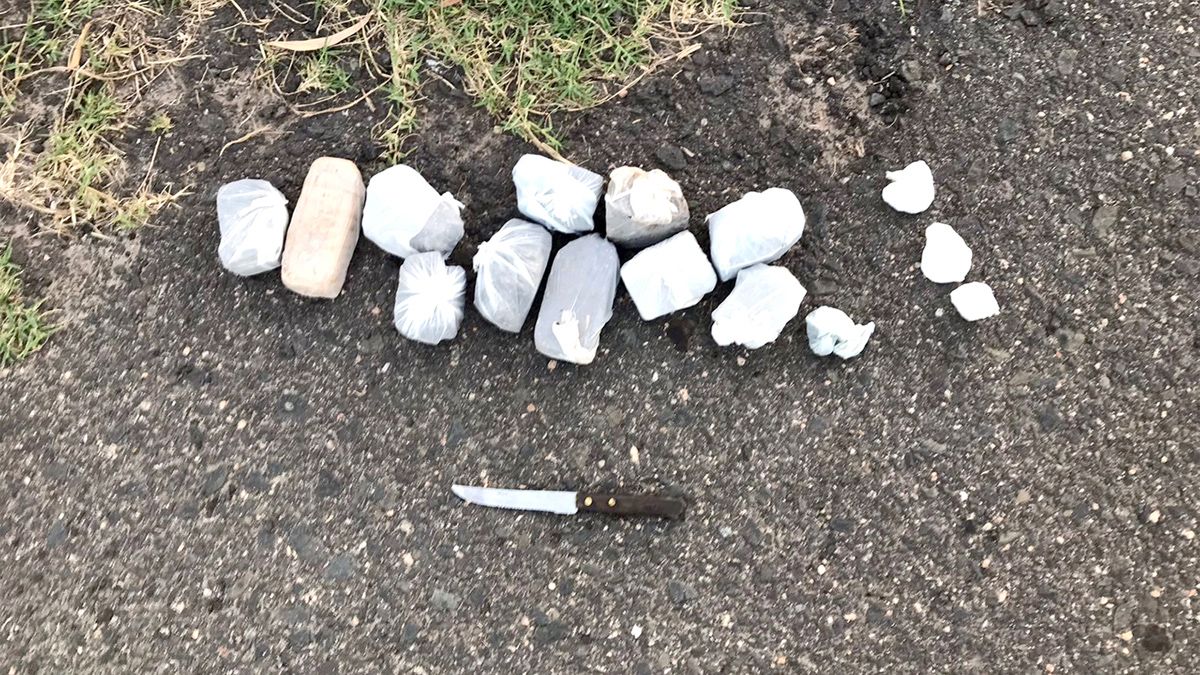 El personal especializado confirmó la presencia de un ladrillo de marihuana compactada y otros diez envoltorios con picadura de la misma sustancia que supera el kilogramo y casi 30 gramos de cocaína.