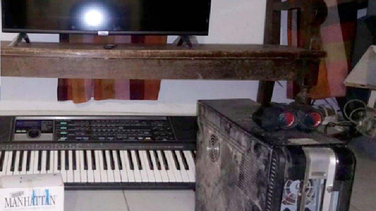 En la continuidad del allanamiento, los policías secuestraron un televisor led de 40 pulgadas, un órgano musical, un CPU completo, una notebook, binoculares y un kit de limpieza para armamentos, entre otros elementos.