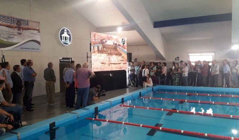 El intendente hizo la presentación de las reformas. En el acto estuvieron Agustín Calleri (ex diputado), Martín Herrera, titular de Deportes Río Cuarto y la nadadora Macarena Ceballos