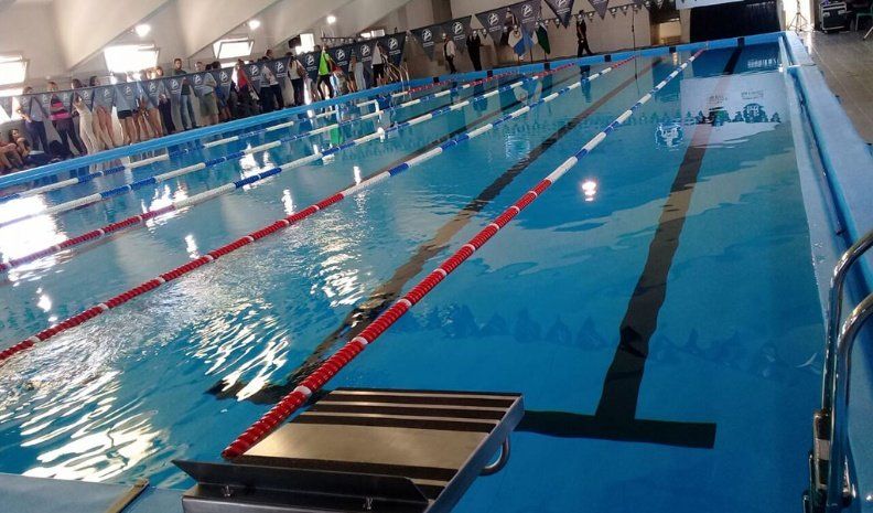 Macarena Ceballos estuvo presente en la inauguración de las obras en la pileta del centro 11 y fue la encargada de estrenarla. Junto a su hermana Florencia, realizó algunos largos.