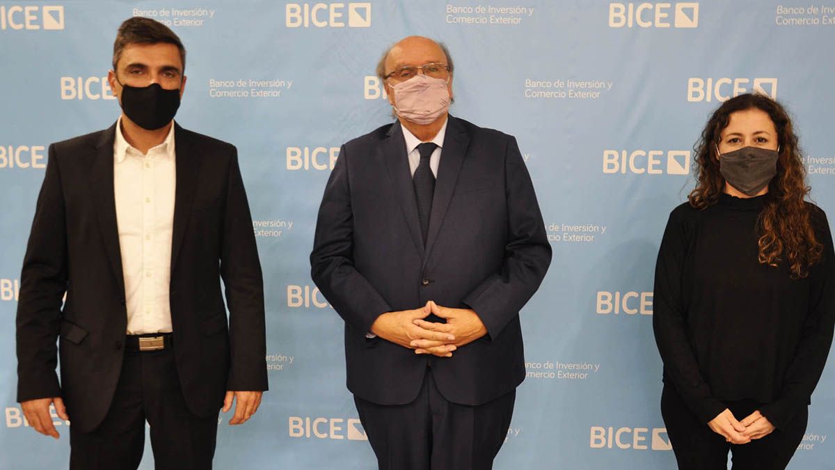 Hicieron el anuncio el presidente del Bice, José Ignacio de Mendiguren; el titular de la empresa, Daniel Córdoba, y la directora financiera y accionista de la compañía, Carina Márquez.