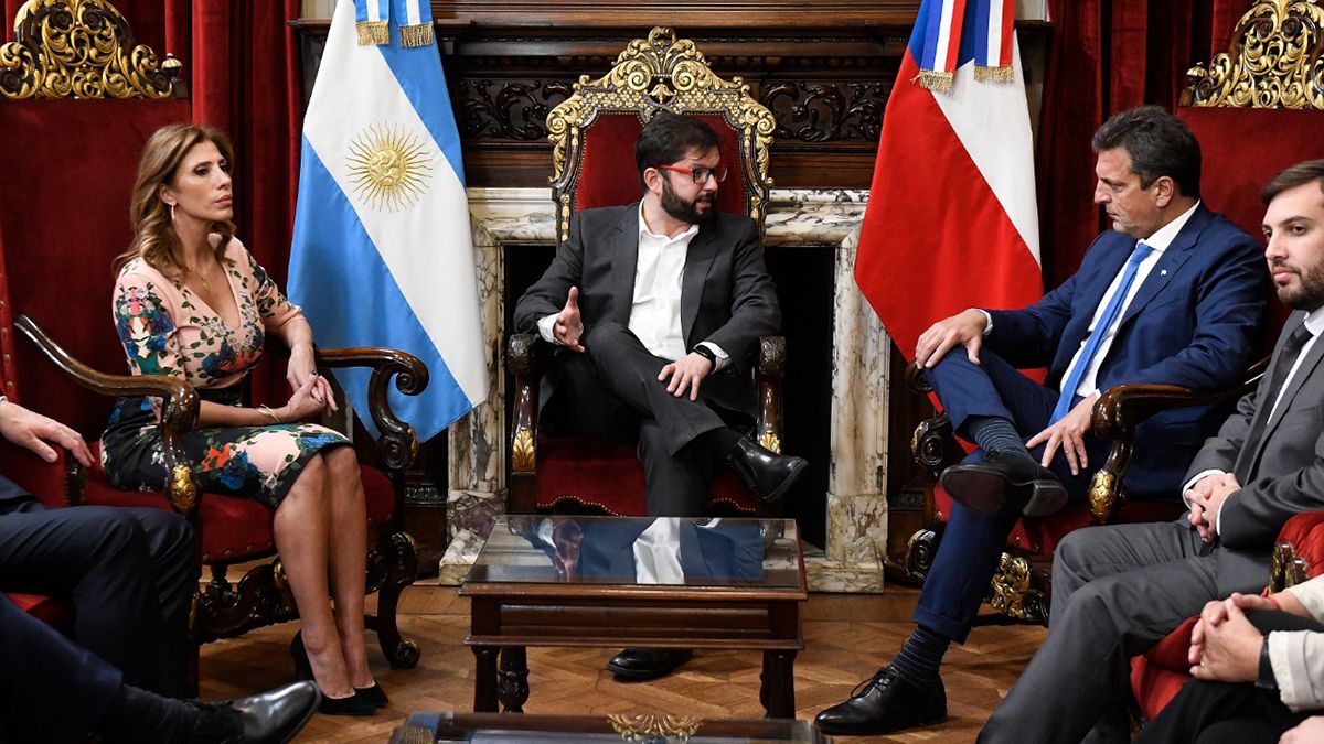Como parte de su visita de Estado a la Argentina, el presidente de Chile, Gabriel Boric, fue recibido en el Congreso argentino por el presidente de la Cámara de Diputados, Sergio Massa, y la presidenta provisional del Senado, Claudia Ledesma Abdala.