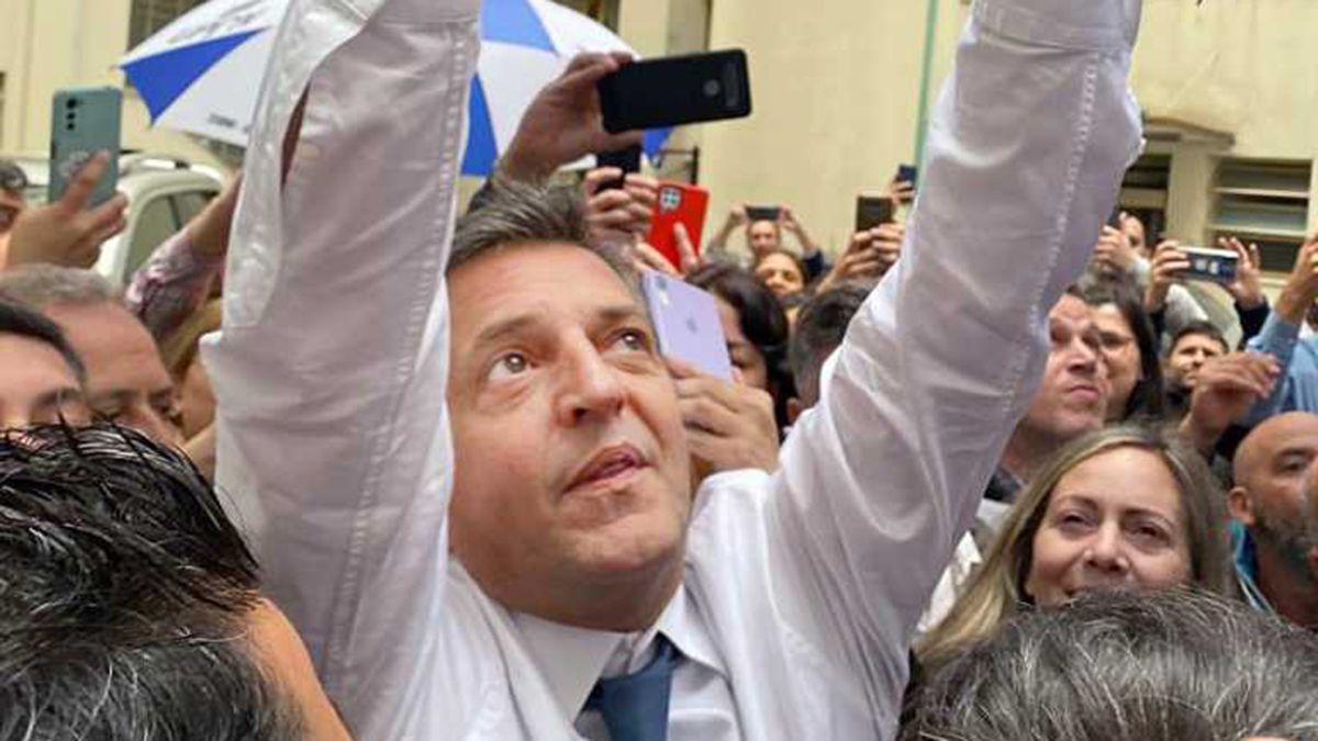 "Presidente, Massa presidente", coreaba la militancia. "Lo mejor que nos puede pasar es tener un Estado haciendo las cosas que tiene que hacer. Y en noviembre cueste lo que cueste", dijo, mientras a su paso abrazaba a los trabajadores que buscaban la foto con el candidato más votado el domingo.