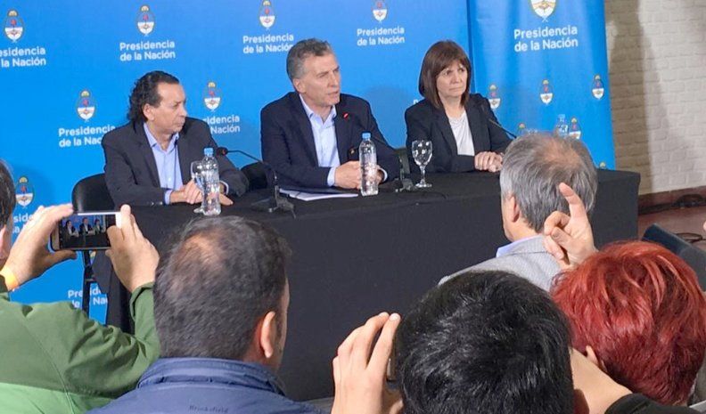 El mandatario estuvo acompañado por la ministra de Seguridad, Patricia Bullrich, y el titular de la cartera de Producción y Trabajo, Dante Sica.