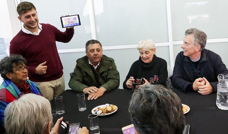 "¿Nuestros abuelos tienen celulares? No los escucho... claro que tienen celulares, también tienen corazón y fuerza, todo eso tienen los abuelos", afirmó Macri.