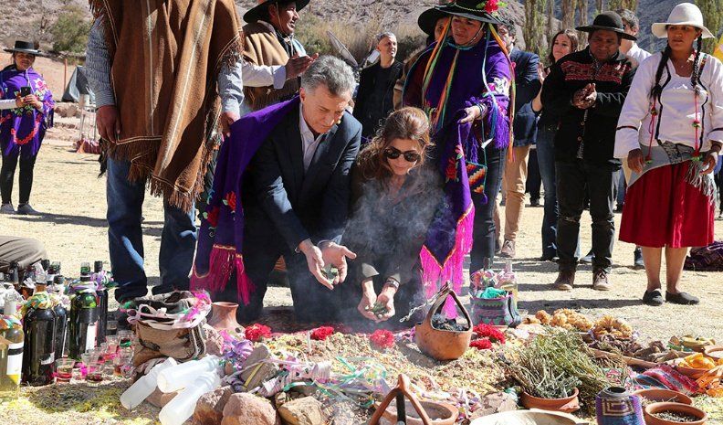 "Permiso a las comunidades, permiso a la Pachamama. Agradecerle, soy Mauricio Macri, vengo de Buenos Aires con mi mujer Juliana, queremos agradecerle por siempre cuidarnos, siempre acompañarnos a los argentinos", dijo el presidente.