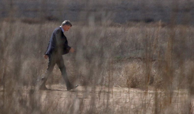 El helicóptero presidencial arribó en horas del mediodía al barrio cerrado Potrerillo de Larreta, sorprendiendo a los vecinos del sector, pues no había conocimiento acerca de la visita del líder de Cambiemos a la provincia.