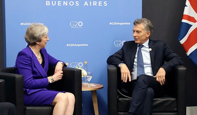 Macri y May se reunieron en un alto en la cumbre de líderes del G20 que se desarrolló en el predio de Costa Salguero y, según fuentes oficiales y de la diplomacia inglesa, durante el encuentro no conversaron de la soberanía sobre las islas Malvinas, aunque ambas administraciones elogiaron el acuerdo alcanzado por medio del cual habrá dos vuelos mensuales desde las Malvinas hacia la ciudad de Córdoba.