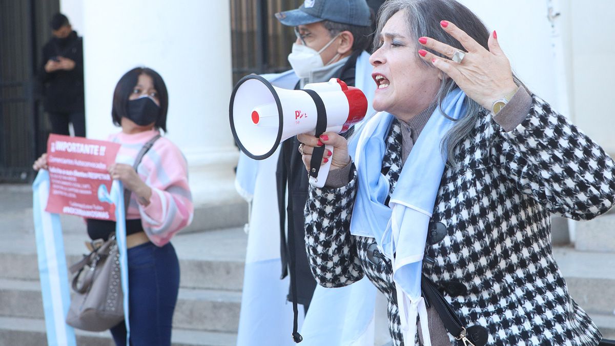 A su turno, la comerciante Daniela Santa manifestó que asistió a la protesta a pesar de las restricciones porque “se están vulnerando” los “derechos como ciudadanos”. “El artículo 14 de la Constitución consagra los derechos de trabajar y de circular. Ningún decreto es superior”, dijo.