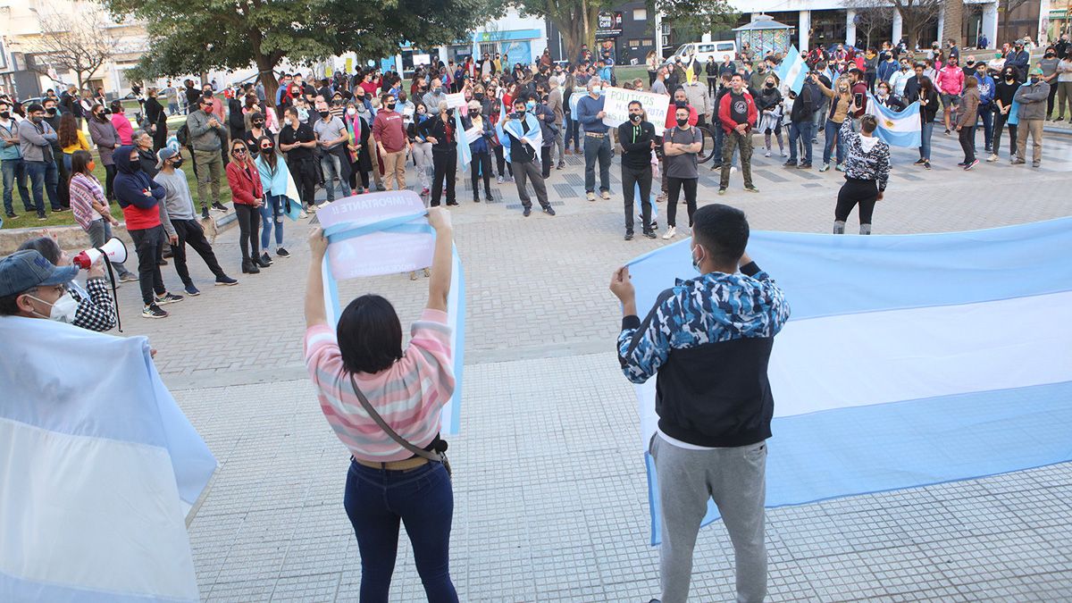 Río Cuarto se sumó a las protestas en contra de las nuevas medidas sanitarias del gobierno nacional para disminuir la cantidad de contagios diarios de Covid-19 y aliviar al saturado sistema de salud. Tal como ocurrió en diferentes puntos del país, y convocada por la Red de Ciudadanos Libres vía redes sociales, ayer se realizó en la ciudad una manifestación local para reclamar “libertad para circular, trabajar e ir a la escuela”. Participaron cientos de riocuartenses, que se concentraron en la Plaza Roca, se dirigieron a la explanada del Palacio Municipal, donde cantaron el Himno Nacional y luego se desconcentraron.