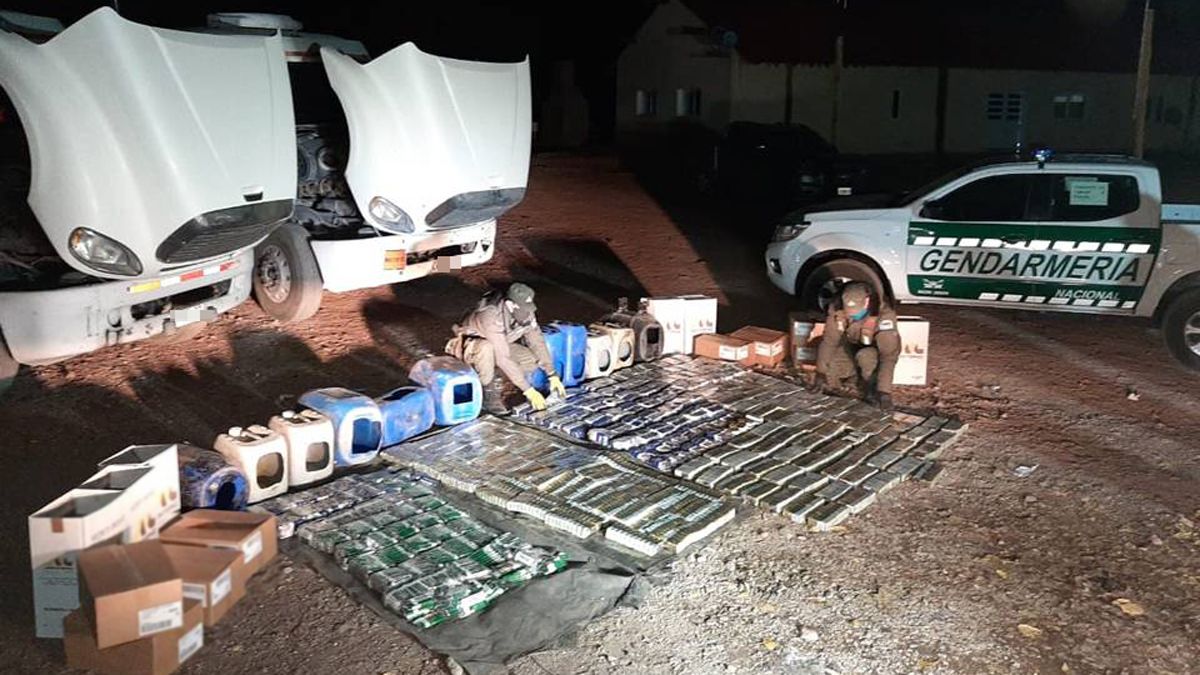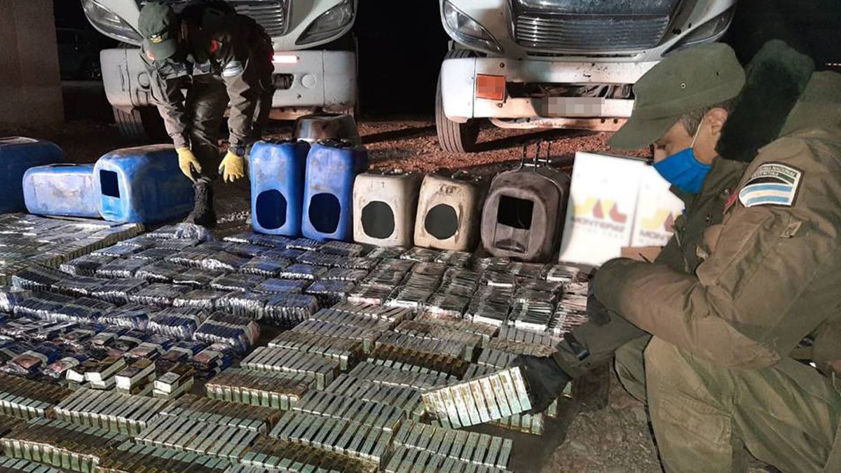 En los transportes encontraron 2.420 paquetes de tabaco que estaban ocultos en bidones de combustibles, explicó Gendarmería en un comunicado.
