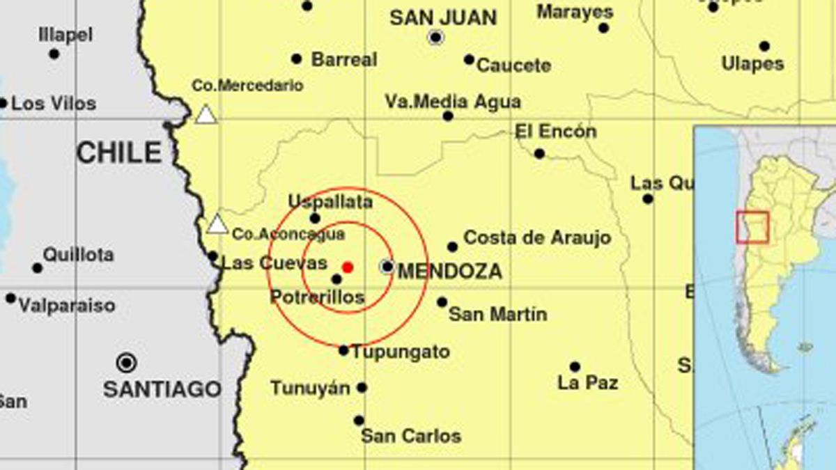 Cuatro sismos sacudieron esta noche a la provincia de Mendoza, tres de ellos se produjeron con pocos minutos de diferencia, según registró el Instituto Nacional de Prevención Sísmica (Inpres). Todos los eventos tuvieron epicentro a unos 38 kilómetros al oeste de la ciudad capital, en proximidades de Potrerillos.