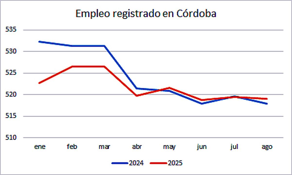 El primer dato oficial de empleo registrado en la provincia bajo la gestión de Javier Milei fue el de enero de 2024, cuando se reportaron, de acuerdo al Sistema Integrado Previsional Argentino (SIPA), un total de 532.300 trabajadores. Fue el pico máximo de puestos formales privados en Córdoba. A partir de allí comenzó un declive que impidió volver a aquellas cifras. El último dato de la Secretaría de Trabajo, Empleo y Previsión Social difundido este mes pero correspondiente a agosto expuso que hay 519.100 trabajadores en esas mismas condiciones, por lo que se perdieron 13.200 puestos en esos primeros 20 meses de gestión.