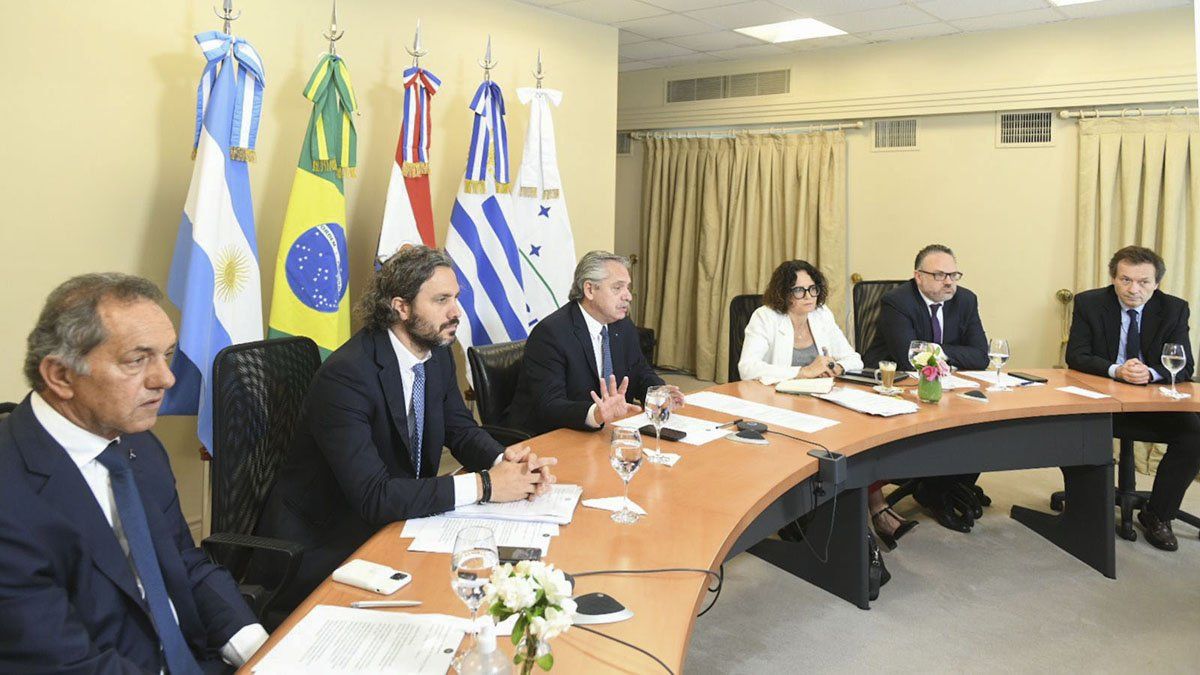 La cumbre se realizó, una vez más, de manera virtual y participaron, además del mandatario argentino, los presidentes de la República Federativa de Brasil, Jair Bolsonaro; de Paraguay, Mario Abdo Benítez; y de la República Oriental del Uruguay, Luis Lacalle Pou.