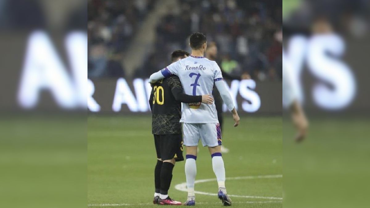 El saludo entre Messi y Cristiano se dio a segundos del arranque del partido, con un apretón de manos, un corto abrazo y sonrisas cruzadas, en lo que pudo ser uno de los últimos choques entre ellos.