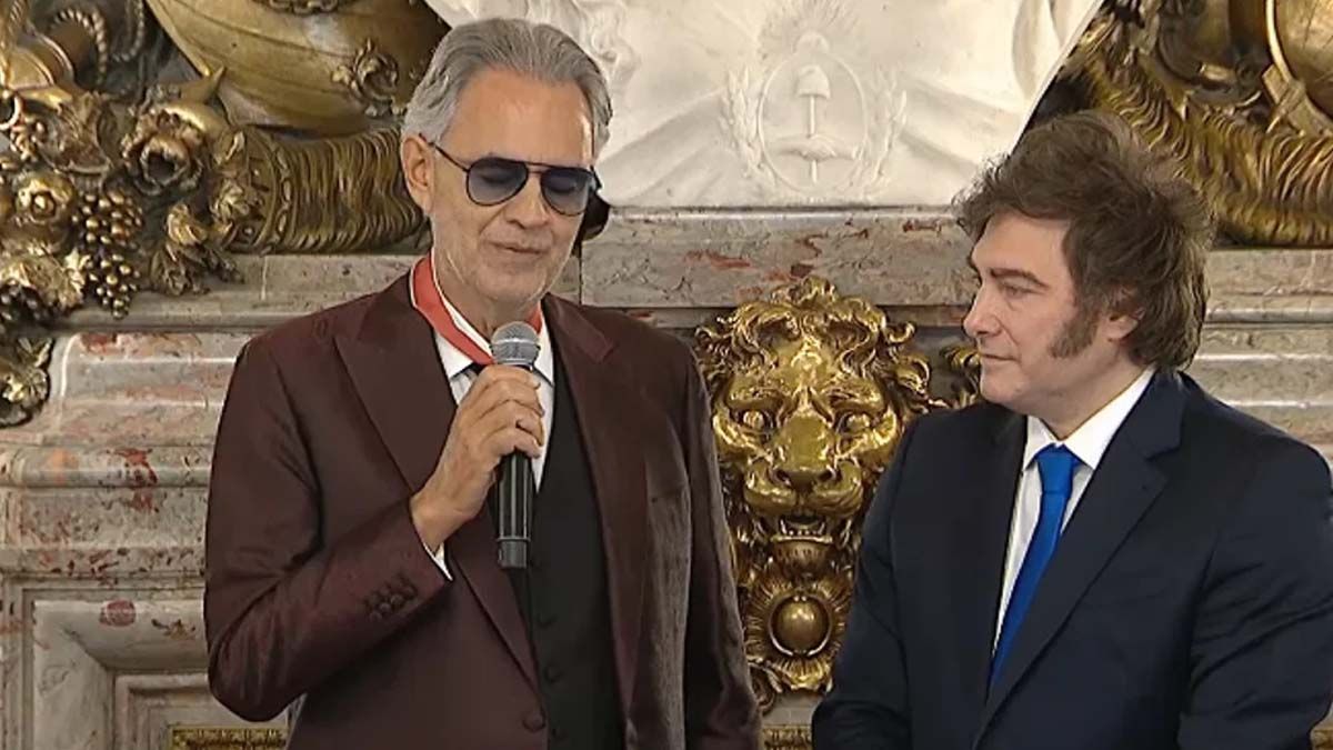 “Vivo este momento como si fuera un sueño”, señaló Bocelli tras recibir la medalla de manos del jefe de Estado. “Nunca me imaginé que un día llegaría a recibir un reconocimiento como este. Quiero agradecerles a todos desde lo profundo de mi corazón. Espero volver pronto”, manifestó el artista en el Salón Blanco de la Casa Rosada.