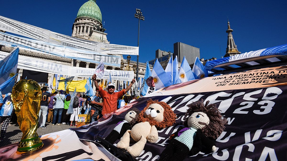 Mientras tanto, antes de ingresar al Parlamento, el nuevo mandatario saludó al público presente llevándose la mano al corazón y la gente le devolvió el gesto al grito de: "¡Libertad, libertad!", una de las consignas que más sonaron en la previa y durante el discurso presidencial.