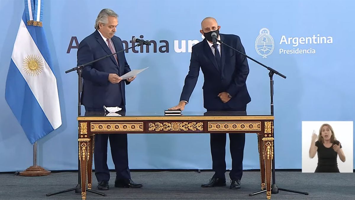 El presidente Alberto Fernández le tomó hoy juramento al designado ministro de Transporte, Alexis Guerrera, quien asumió en reemplazo del fallecido Mario Meoni, en un acto que se desarrolló en el Museo del Bicentenario de Casa Rosada.