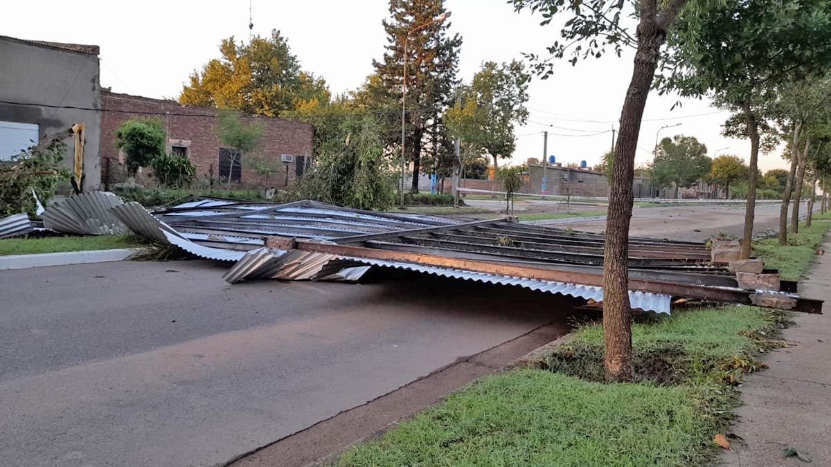 “Fue como un tornado, tuvimos cuatro voladuras de techos, a un galpón le explotó la pared y arrancó los portones. En el Polideportivo, en el Parque de la Salud y en la plaza hubo daños en plantas y roturas de luminarias. En uno de los accesos al pueblo, donde teníamos más de 50 pinos, los bajó todos”, detalló a Puntal el intendente Ariel Grich.