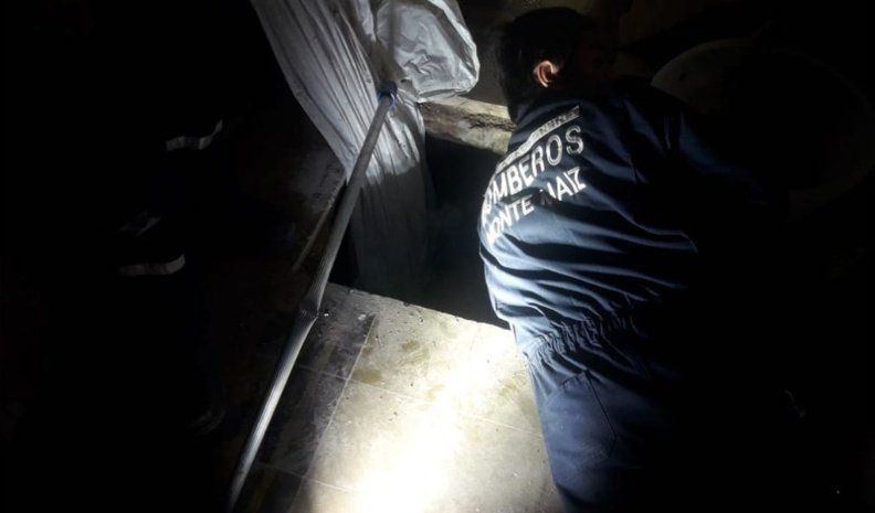 El baño de la Óptica Llamosas se desmoronó, por lo que solicitaron la participación de los bomberos, quienes observaron el túnel.