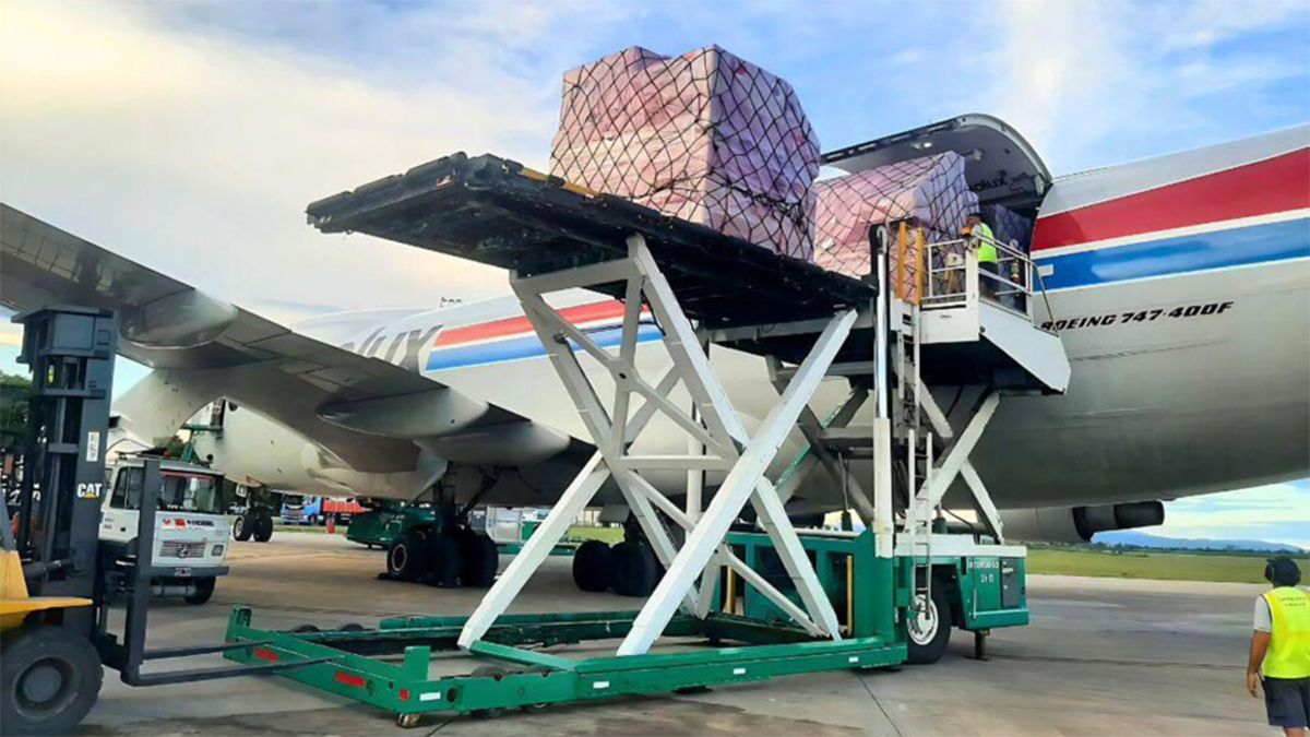 En la semana que pasó llegaron al aeropuerto de Tucumán, desde Buriram, Tailandia, cuatro aviones Boeing 747 y 777 con 3.600 toneladas de equipamiento para ser trasladados a Termas de Río Hondo para el armado de los boxes y también las motos que se utilizarán para las distintas carreras de cada categoría.
