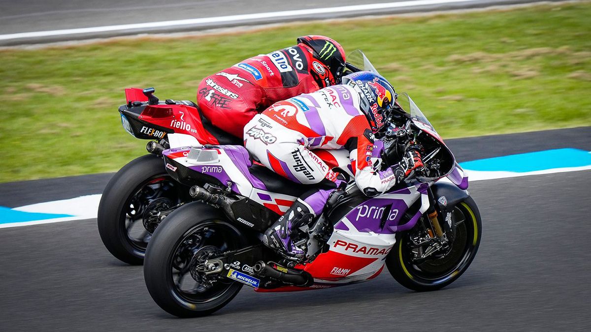 Zarcó batalló en las primeras vuetlas desde el sexto puesto, para avanzar en el pelotón y llegar a la punta en la última vuelta. El campeón Francesco Bagnaia (Ducati) lo escoltó y el podio lo completó Fabio Di Giannantonio (Ducati), logrando una premiación completa para la marca italiana, aunque con pilotos de tres equipos distintos, Pramac, Ducati y Gresini.