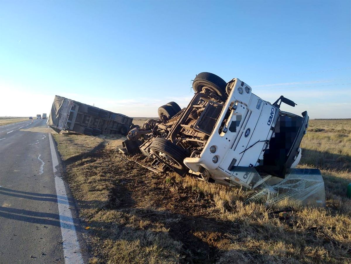 El siniestro vial se registró a las 7.30 en el kilómetro 531 de la mencionada ruta cuando, por causas que se intentan determinar, se produjo el vuelco del camión con acoplado y cargado con soja para quedar en la banquina sur.