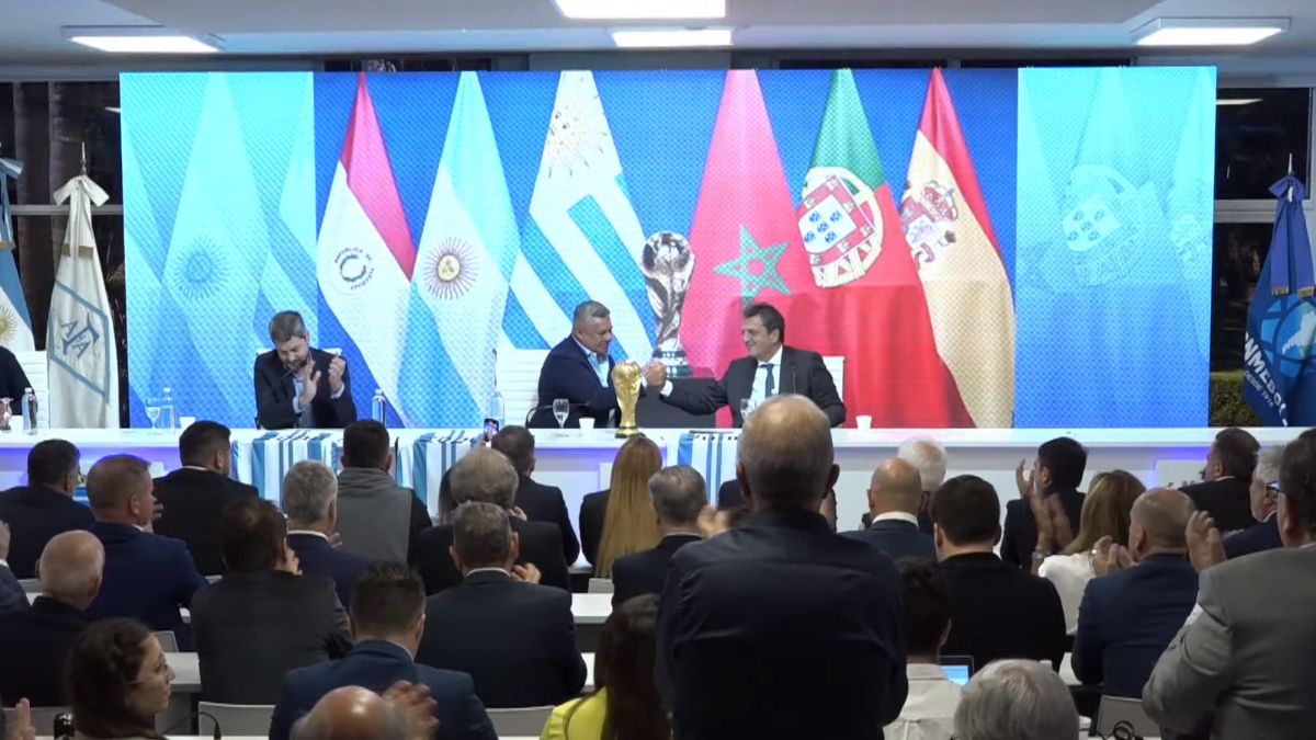 Lo hizo durante una conferencia de prensa por la confirmación de la Argentina como sede del partido inaugural del Mundial 2030 junto al presidente de la AFA, "Chiqui" Tapia y al ministro Matias Lammens.