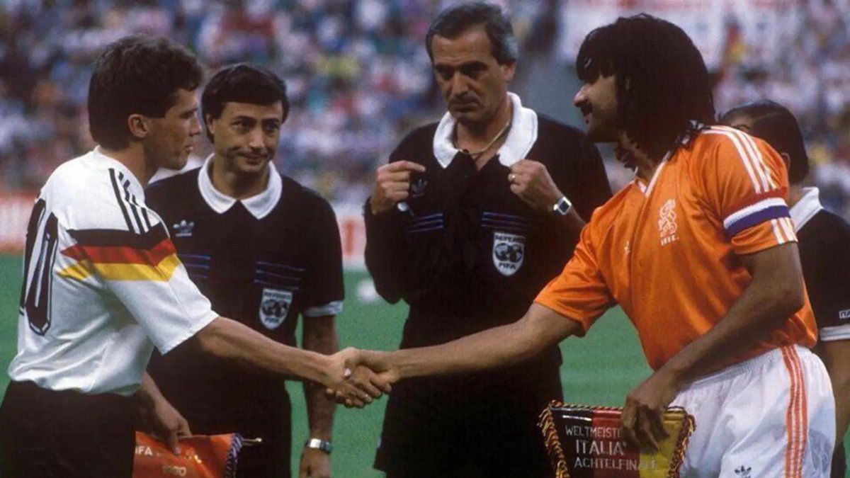-A los veinte minutos del primer tiempo ya tenía a los dos jugadores expulsados, que no es ningún mérito para un árbitro. Cuando expulsás a un jugador tenés que hacer tu propia autocrítica. Antes de eso hablé con los dos, aunque uno era holandés y el otro era alemán, pero jugaban en Italia. Rijkaard, para el Milán, y Voeller, para la Roma, entendían italiano. Les dije que jugaran tranquilos, lo que yo no sabía era que en las eliminatorias ellos habían tenido un serio problema: Voeller le fisuró una costilla, esa información antes no la teníamos, hoy sí está.