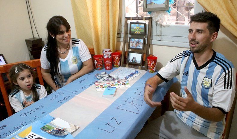 Vanesa Isso, de 29, su marido Federico Briña, de 32, y su hija Delfina, de 6, son amantes del fútbol y no quisieron perderse la oportunidad de viajar a otro país a alentar a la selección argentina. Ya tienen todo listo: las banderas, las credenciales y las entradas para acompañar al equipo liderado por Sampaoli. Además, llevan un diccionario de bolsillo de ruso-español. Su estrella favorita es la misma de todos los argentinos: Lionel Messi.