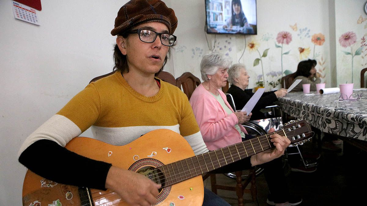 Los residentes de los geriátricos están tan incentivados con estos talleres que le piden canciones a la tallerista para próximos encuentros.