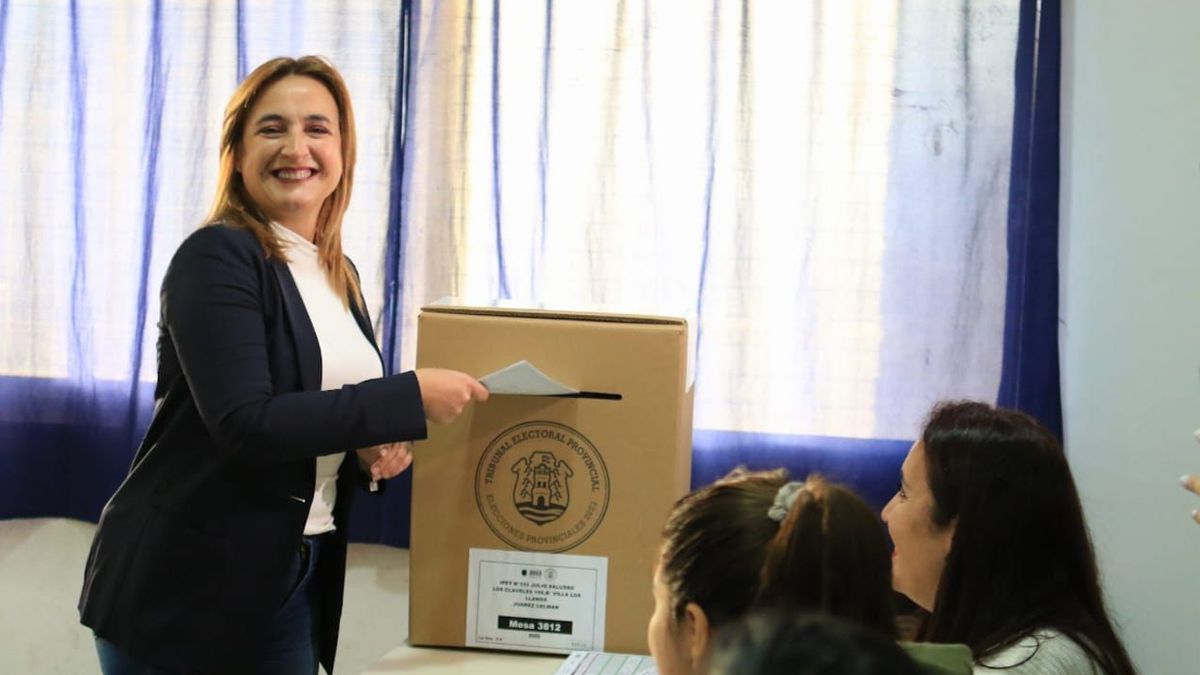 La candidata a vicegobernadora por Hacemos Unidos por Córdoba, Myrian Prunotto, votó esta mañana en un colegio de Estación Juárez Celman.
