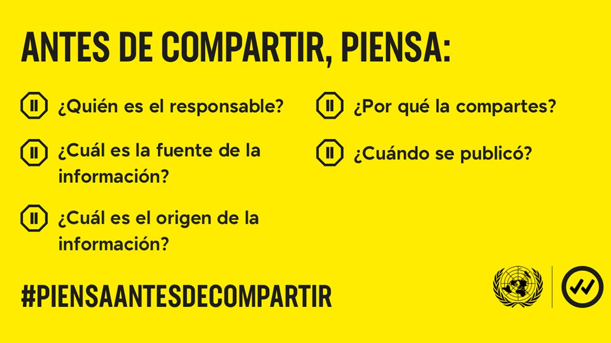 Algo similar ocurre desde que el coronavirus copó el mundo. “A medida que el coronavirus cambia por completo nuestras vidas, personas de todo el mundo buscan información sobre cómo protegerse, mantener la esperanza y ayudarse mutuamente”, dice la campaña que lanzó Naciones Unidas . Y sigue, "el mundo solo puede contener el virus y sus consecuencias si todas las personas tienen acceso a información precisa y confiable".