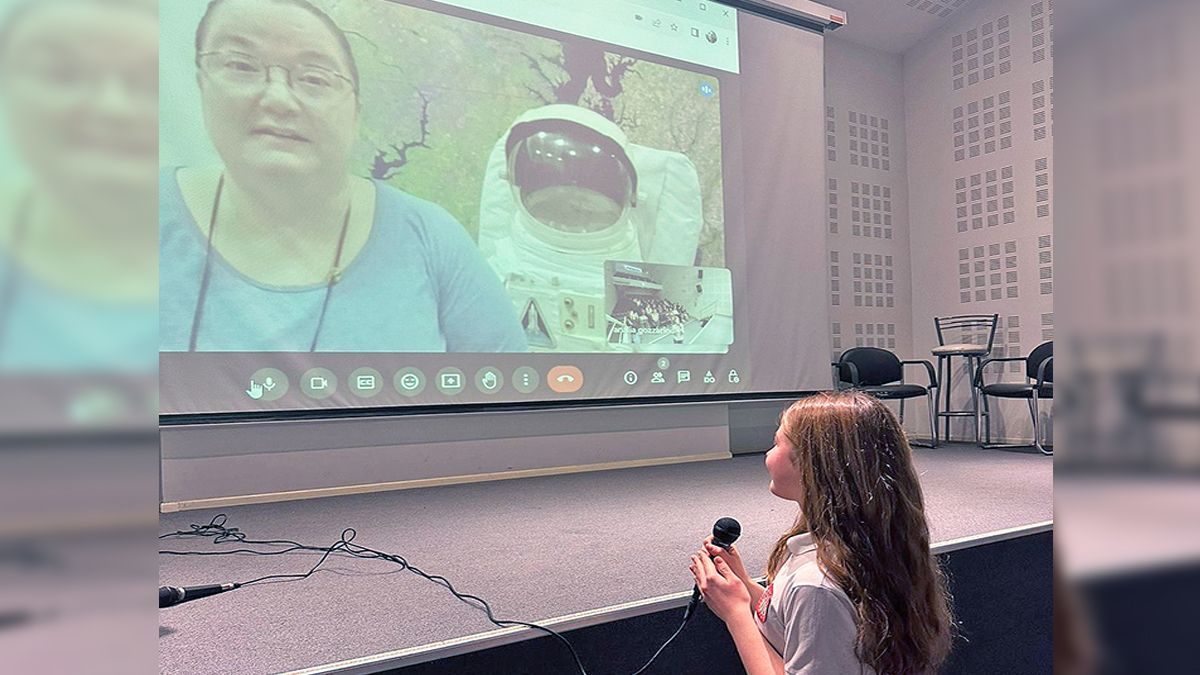 Fue a partir de las gestiones previas efectuadas por la docente Analía Gozzarino que durante casi una hora los alumnos pudieron conocer de primera mano cómo es vivir y trabajar en el espacio y tener la posibilidad de preguntar directamente a los protagonistas cuáles son las rutinas cotidianas en un ámbito totalmente ajeno a la fuerza de gravedad.