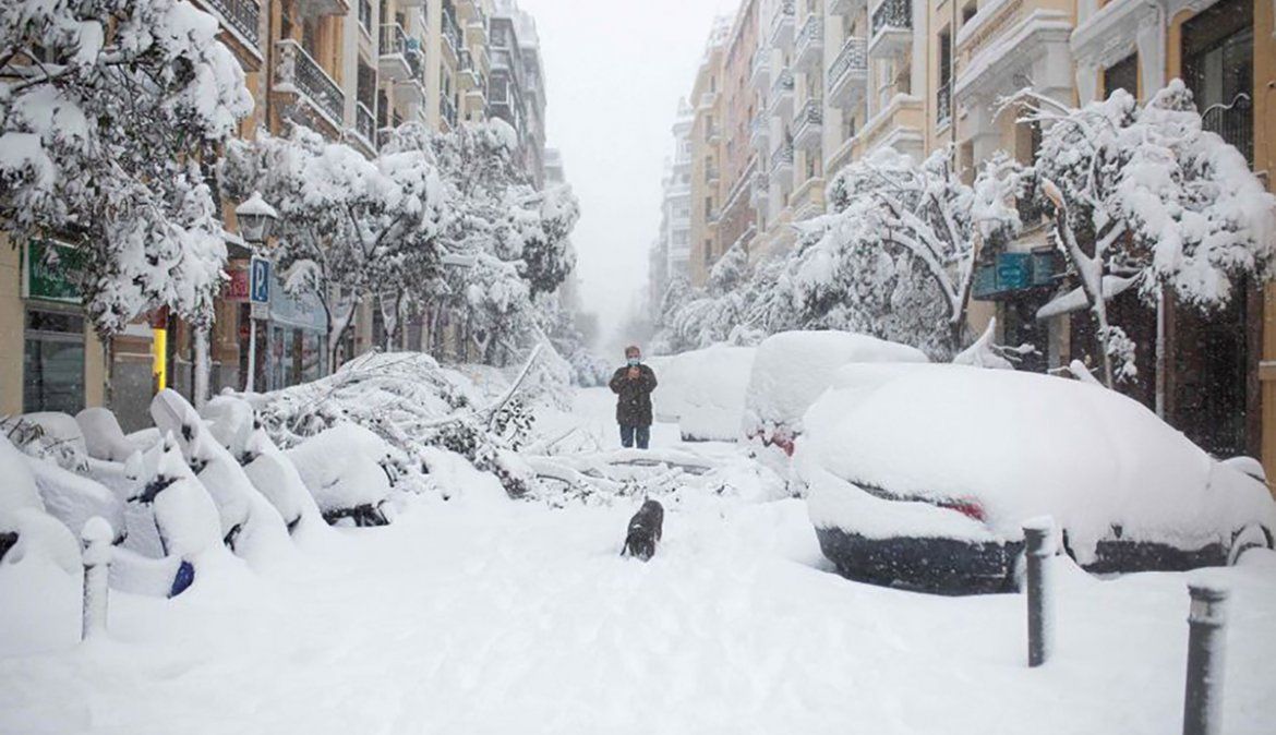 El temporal colapsó la ciudad de Madrid, ya que dejó más de 400 rutas afectadas, 60 cerradas y decenas de conductores atrapados: también obligó al cierre del Aeropuerto de Barajas.