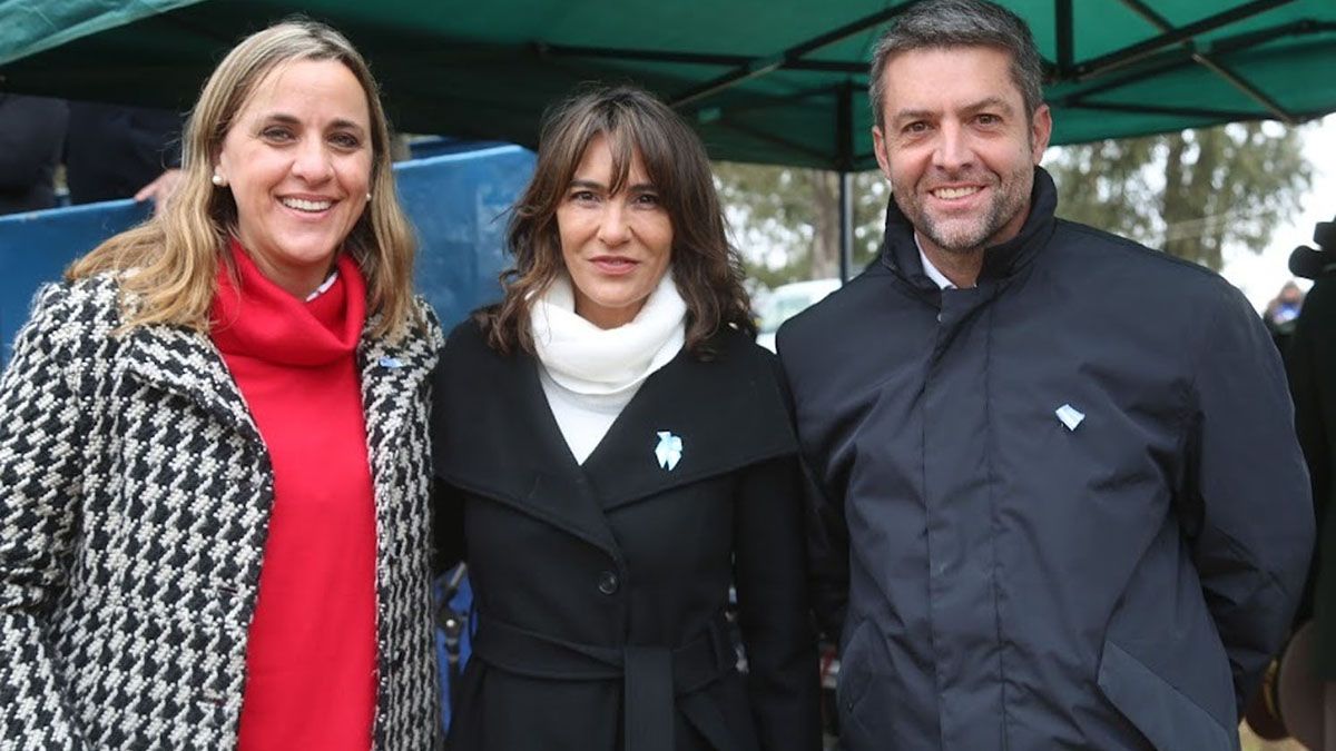 El pasado miércoles, en los festejos por el 25 de Mayo, se los vio a casi todos buscando destacarse en el acto oficial y en ese marco se dio una foto muy particular (la que fue enviada a los medios) entre la diputada nacional Natalia de la Sota con Mercedes Novaira y Agustín Calleri.