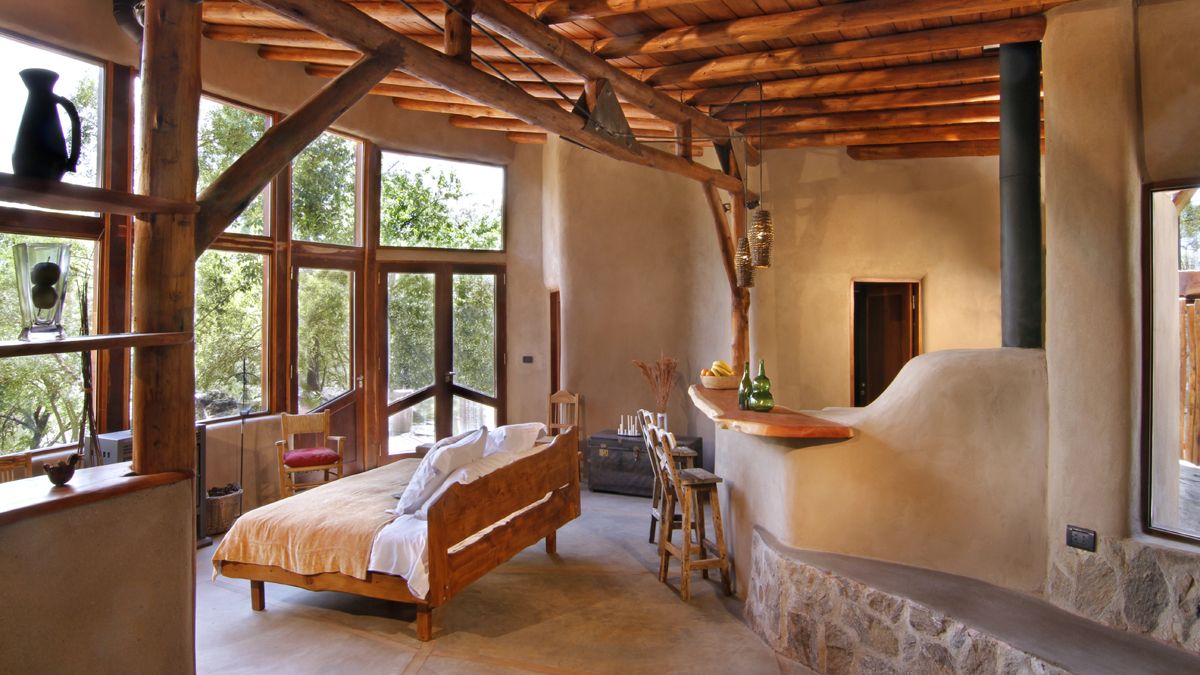 Bajo esa premisa, los arquitectos Ignacio Serralonga y Cristian Lico, responsables del estudio “Hombre de barro ”, de Villa General Belgrano, asumieron el compromiso de dar vida a una vivienda en medio de un bosque de coníferas y sobre una ladera en Inti Yaco (en quechua: “Aguas del Sol”), en el corazón del valle de Calamuchita.