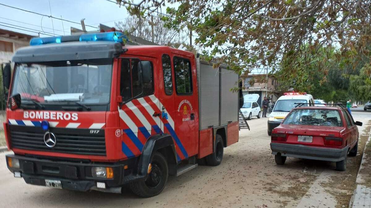 Bomberos Voluntarios de Río Cuarto acudió al rescate en altura del albañil, en la vivienda ubicada en calle Rio de La Plata al 400.