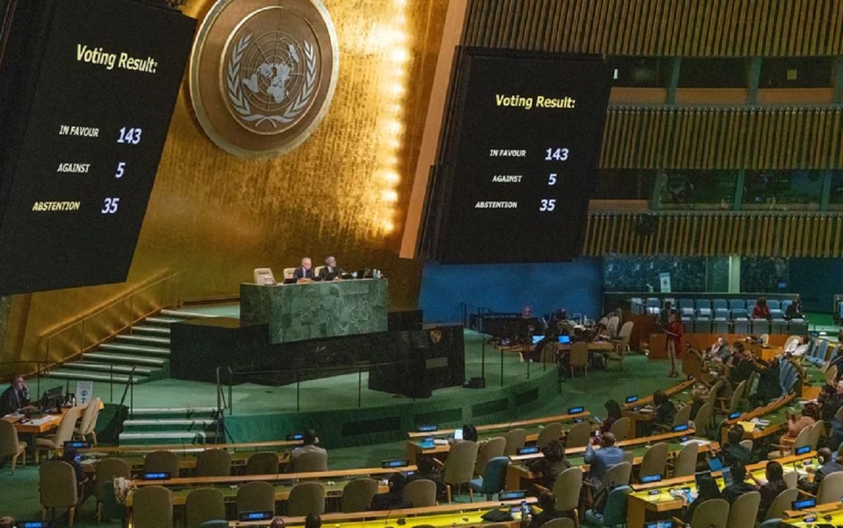 La Asamblea General de la ONU aprobó hoy, con el voto de la Argentina y por amplia mayoría, una resolución de condena a "la anexión ilegal" por parte de Rusia de cuatro territorios de Ucrania, infligiendo una nueva derrota diplomática a Moscú, que había vetado una resolución similar en el Consejo de Seguridad a fin de septiembre.