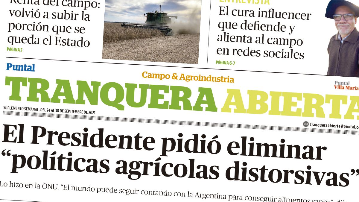 El suplemento Tranquera Abierta presenta entre sus principales títulos que el Presidente pidió eliminar "políticas agrícolas distorsivas", lo hizo en la ONU dijo que "el mundo puede seguir contando con la Argentina para conseguir alimentos sanos".