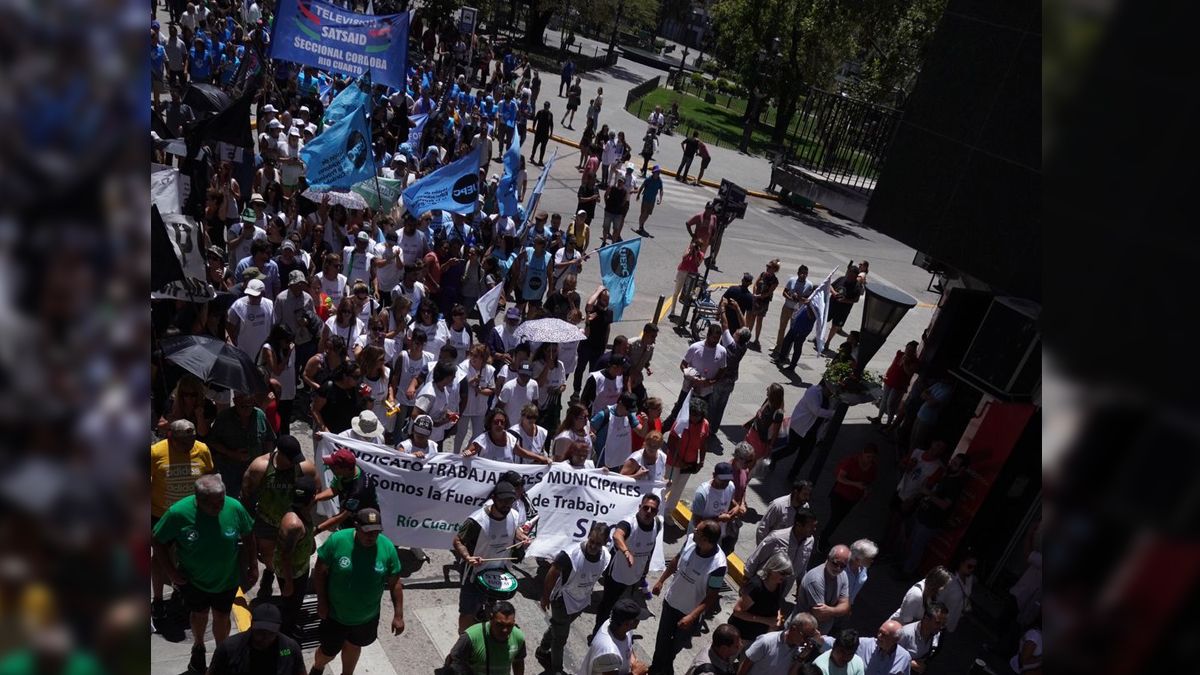 Desde la media mañana de este miércoles se llevó a cabo en Río Cuarto el paro y movilización en adhesión a la medida de fuerza nacional, en contra del DNU y la ley ómnibus.