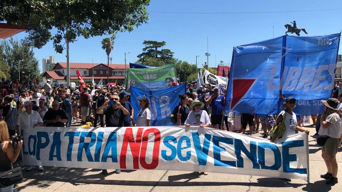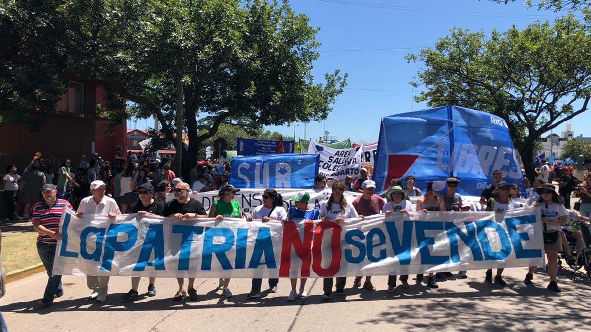 A las 11:30 se llevó a cabo una concentración en la rotonda San Martín, bajo la consigna “La Patria no se vende”.