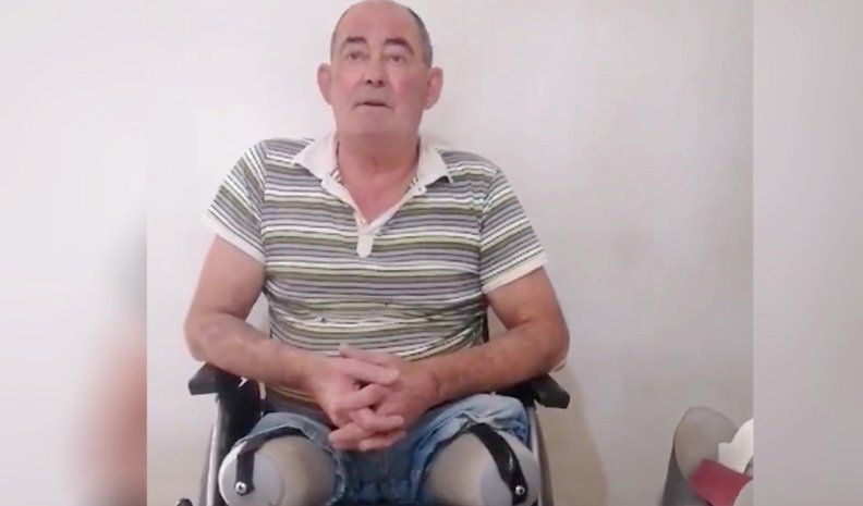Es un vecino de Ucacha, Rubén Martinat. La mutual no le cubre la compra de las piernas ortopédicas y decidió grabar un video en las redes sociales, apelando a la solidaridad para juntar fondos