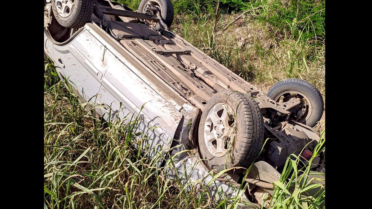 Por causas que se tratan de determinar, el conductor de una Ford Ecosport -circulaba de oeste a este- perdió el control del rodado, que terminó volcando a un costado del camino y quedó en posición invertida.