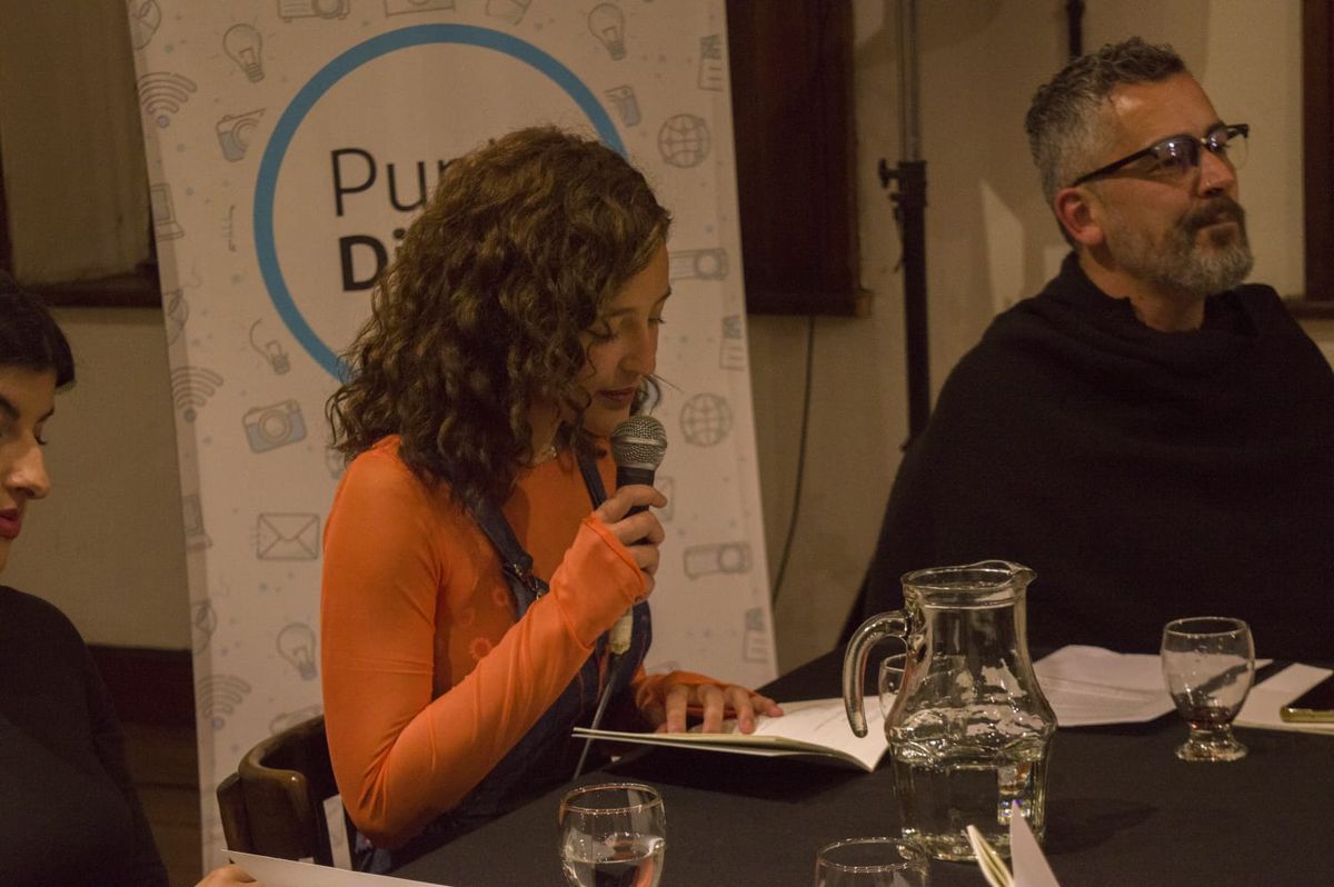 Esta página, con sus cuatro columnas y sus dos fotos, se pondrá a prueba en el intento de retratar este episodio de la vida (casi como un universo infinito en sí mismo) de la poeta local Camila Corradi. Tiene 18 años y es la ganadora de la convocatoria “Novísimes” del Festival de Poesía Ya! realizado entre el 3 y el 12 de febrero de este año. Camila se presentó el sábado pasado en el Salón de Honor del Centro Cultural Kirchner (CCK) con una lectura íntima y sentida de sus textos. Novísimes es un espacio dedicado a darle visibilidad a los y las jóvenes poetas del país.