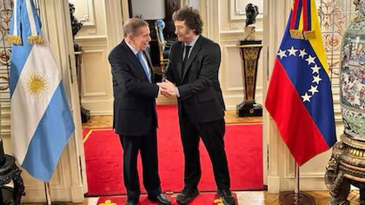 Al término del encuentro, Milei invitó a González Urrutia al mítico balcón que da a la Plaza de Mayo, donde lo esperaban cientos de venezolanos residentes en la Argentina. Lo hizo junto a su esposa, Mercedes López.