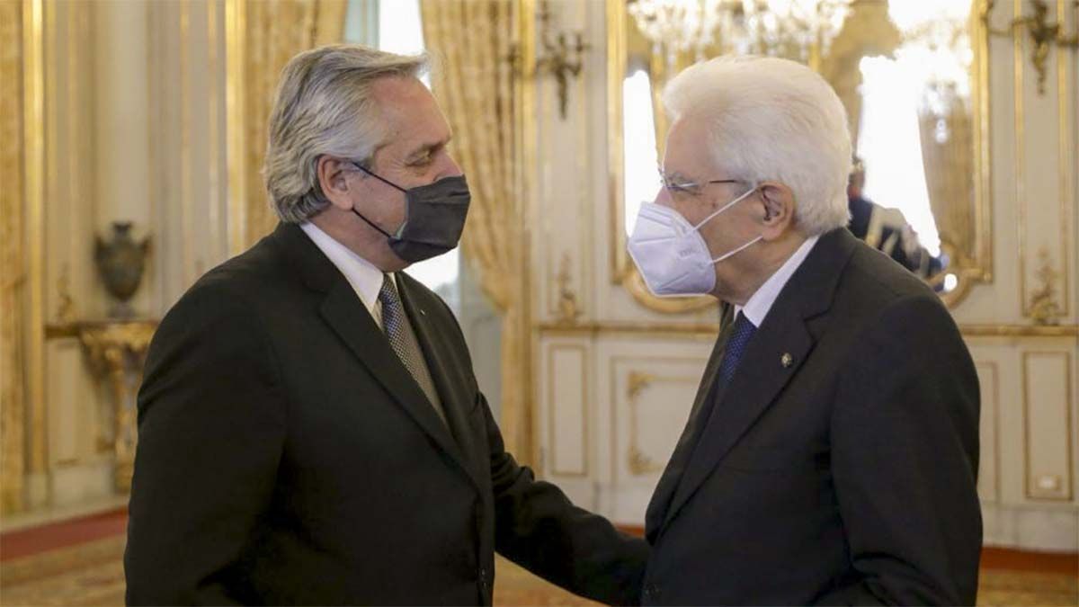 El presidente Alberto Fernández se reunió hoy en el Palacio del Quirinale, en Roma, con el presidente de Italia, Sergio Mattarella, quien ofreció un almuerzo en honor a la comitiva argentina, y luego mantuvo una reunión de trabajo con el presidente del Consejo de Ministros, Mario Draghi.