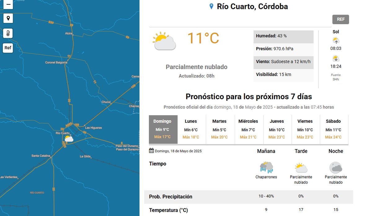 Río Cuarto salió de la zona de alerta: la máxima estimada para hoy es de 17°