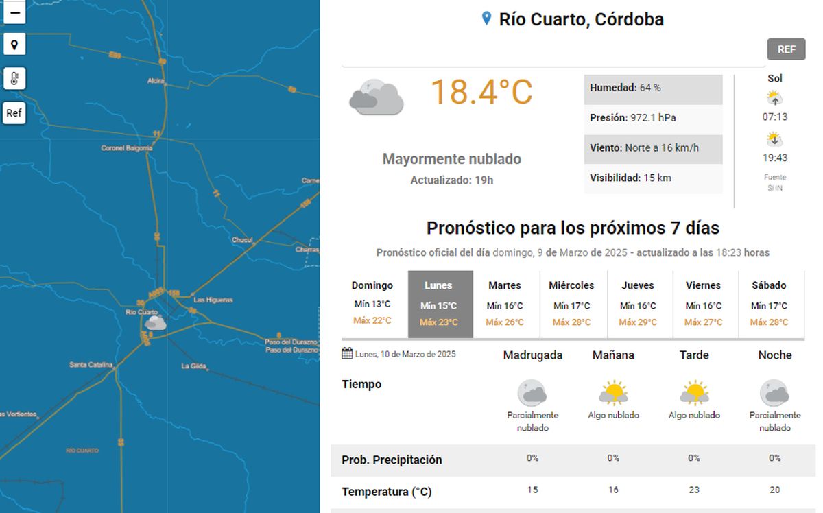 Luego de unos días pasados por lluvias, llegan jornadas muy agradables en la ciudad de Río Cuarto.