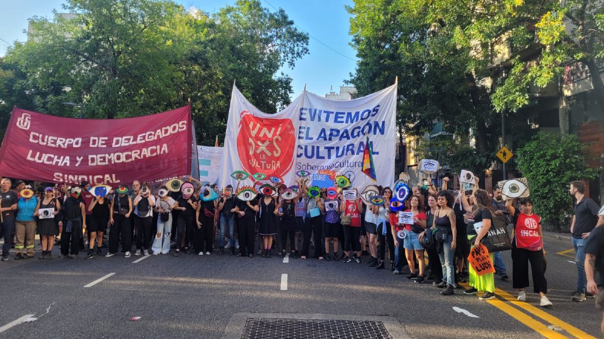 La protesta fue impulsada por la comisión estudiantil del espacio Unidxs x la Cultura, centros de estudiantes, sindicatos docentes, sectores de la cultura y asambleas barriales de la Ciudad bajo la consigna de "Sí la vemos, por eso nos movemos".